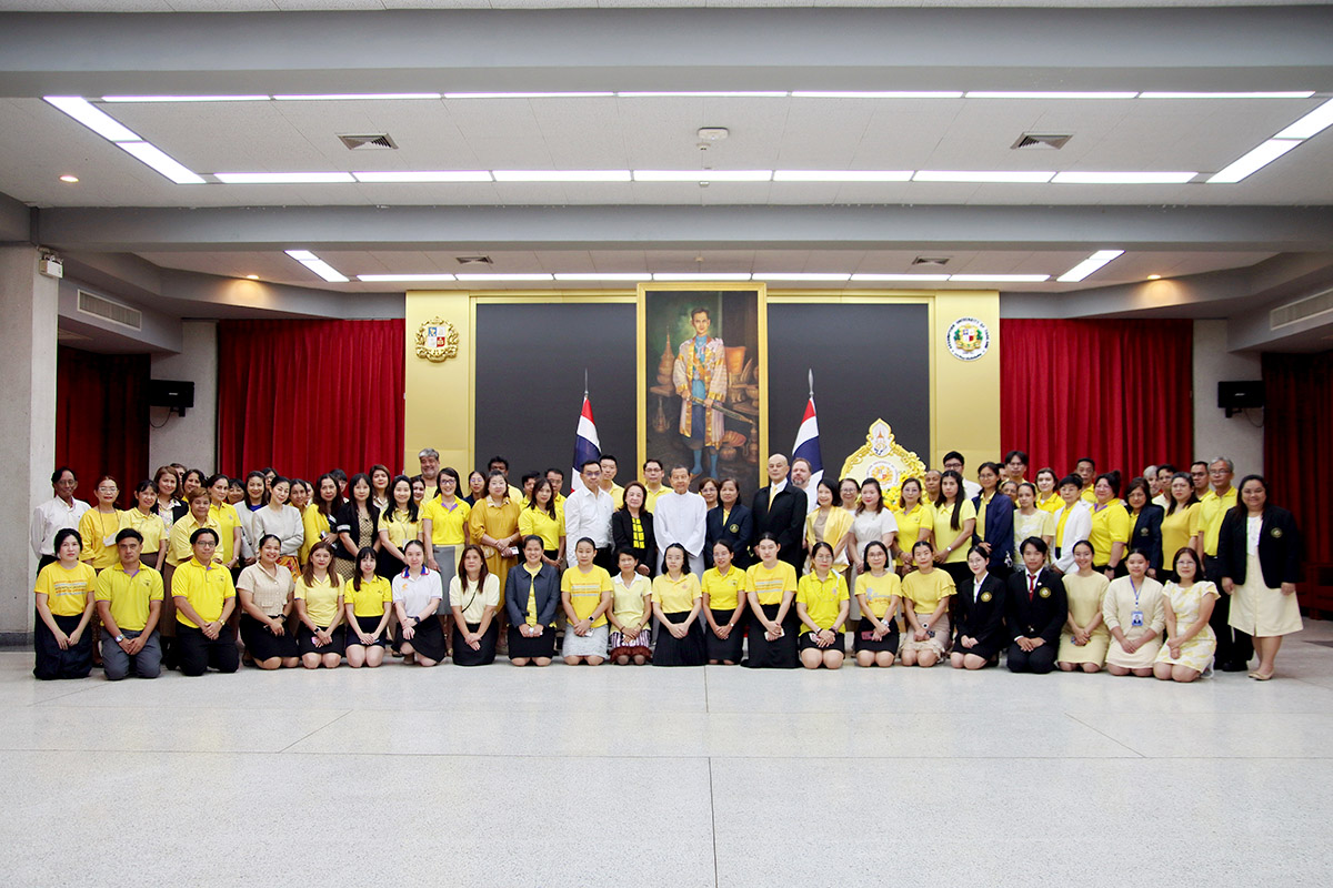 At Suvarnabhumi Campus, the community gathered in the King’s Room of the Cathedral of Learning. The service opened with the laying of a wreath, followed by a remembrance speech. The ceremony concluded in stillness, as participants stood together for 89 seconds of silence, a symbolic gesture echoing the years of His Majesty’s reign.